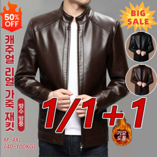 [1+1][최저가!!!] 캐주얼 양가죽 재킷 중년 기모 빅사이즈 천연 양가죽남성바이크자켓 양가죽 재킷 내풍 보온 겨울