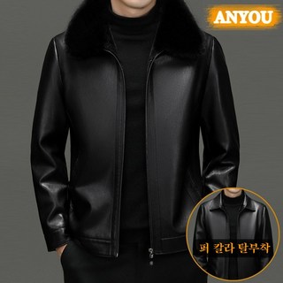 ANYOU 남성 가을 겨울 가죽자켓 기모 도톰 캐주얼 가죽 재킷 남성코트