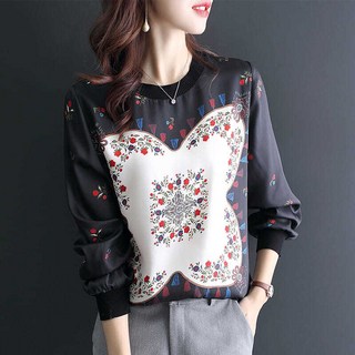 빌리즈빈 봄 가을 여성 라운드넥 루즈핏 플라워 프린트 블라우스 7158