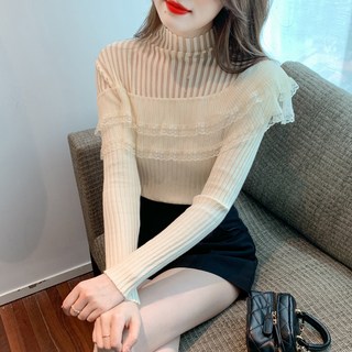 패션고리 여성 가을 라운드 셔링 레이스 블라우스 H908