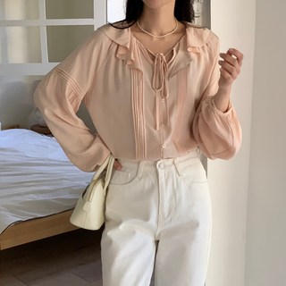여성 리본 수입 모임 명품 블라우스 러플 프릴 드라마 셔츠 연예인