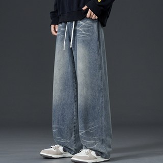 남자 청바지 카고 미국식 빈티지 데미지 벌목바지 워싱 데님 와이드 순면 일자 긴바지 TH2401073