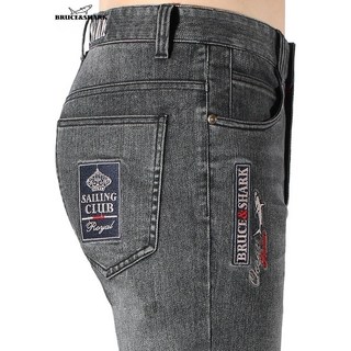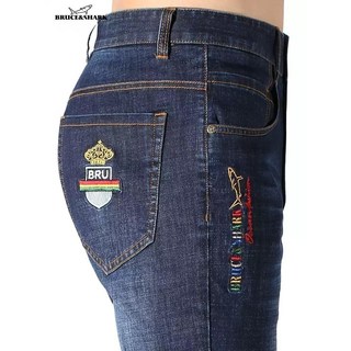 남자명품바지 신사복 자수 청바지 스트레이트 바지 Bruce Shark raymar