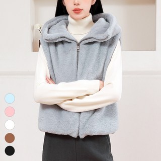[SPM] D여성밍크털후드조끼 여자 가볍고 부드러운 후드 집업 보온 데일리 베스트 퍼 조끼