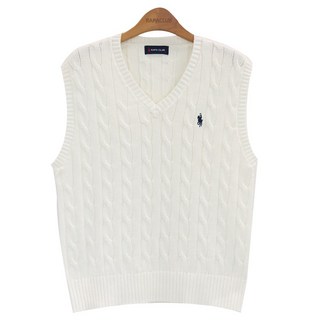 라파클럽 남녀공용 브이넥 케이블 니트 조끼
