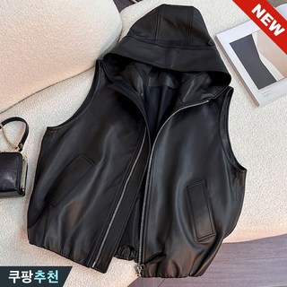 (완전 추천) 90kg까지 날씬해보이는 여성 고급 가죽 후드 집업 베스트 자켓 봄 여름 추천 루즈핏 빈티지 민소매 숏 PU 레더 코트 캐주얼 큰옷 여성의류 4xl 패션 조끼