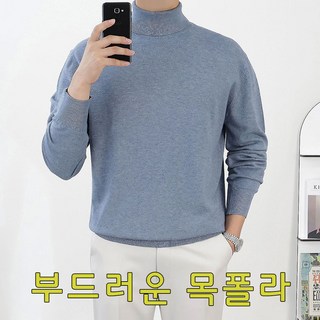 남성 목폴라니트 7색상 부드러운 폴라티 심플 무지 캐주얼 기본 목폴라