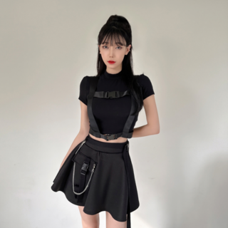 칸토 스트랩 크롭 반팔 티셔츠 방송댄스복 공연 무대 의상 걸리시 블랙 단체복 스트릿 유니크 버클 클럽 페스티벌룩