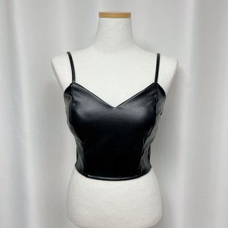 [패드내장] 섹시 레더 뷔스티에탑 뒷지퍼 밴딩 레이어드 가죽 크롭
