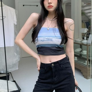 cammello 유니크 크롭탑 튜브탑 Y2K 탱크탑 민소매 크롭나시