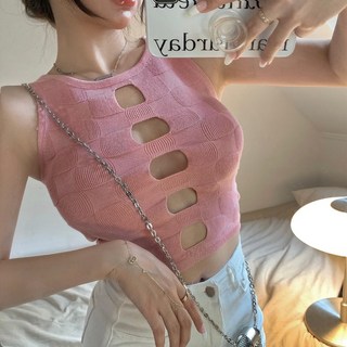 쪼예 섹시 가슴 펀칭 크롭 민소매 탑