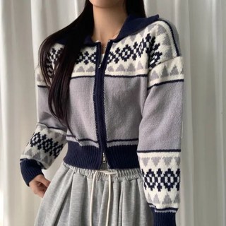 리뉴엔스 투웨이 아가일 크롭 노르딕 집업 가디건