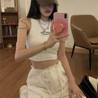 cammello 스타 배지 크롭 나시 탑 Y2K 빈티지 크롭 민소매 티셔츠
