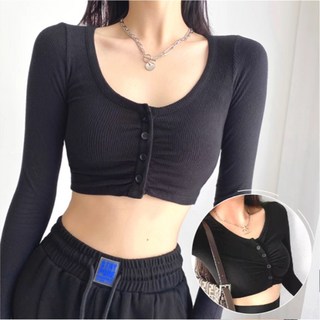 쪼예 섹시 이너 버튼 크롭 슬림 나시 티셔츠