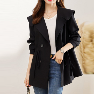 besteffie 트렌치코트 여성용 가을 트렌치 코트 더블 브레스트 긴팔 루즈핏 캐주얼 자켓 허리끈 디자인 E28