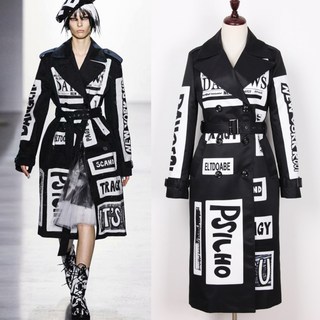 23 블랙 레터 프린트 트렌치 코트 ~3XL 까지