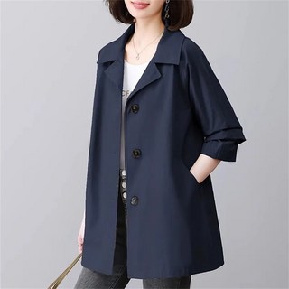 besteffie 여성용 봄가을 간절기 코튼 혼방 롱 슬리브 싱글 버튼 루즈핏 트렌치코트 K19