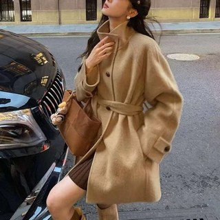 오니몰 울100 럭셔리 핸드메이드 오버핏 벨트 로브 여성 롱코트