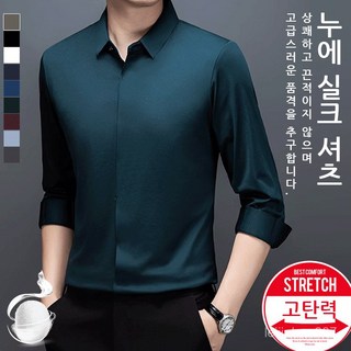 [즉시출하] 고급스러운 남성 스판 실크 셔츠 남자셔츠오버핏 남성실크셔츠
