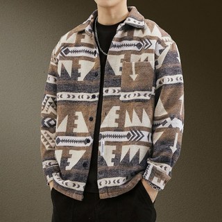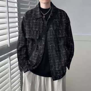FANSYLI 가을 겨울 남성 트위드 자켓 체크 니트 코트 빅사이즈 루즈핏 캐주얼 멋스러운 셔츠 자켓 W2408A16