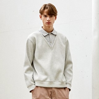 커스텀어스 남성용 페이크 레이어드 가디건형 배색 카라티 CXS23FKKT972