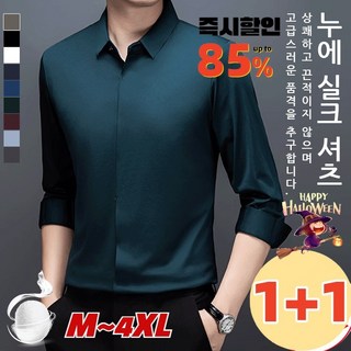 [초특가] 1+1 남성 봄 가을 고급스러운 남성 스판 실크 셔츠 슬림핏 셔츠 캐주얼 아빠 남방