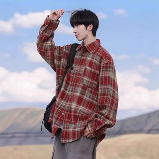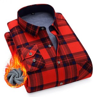 비비코코 순면 기모 체크 와이쇼츠 두툼한 긴팔 남성 캐주얼 카라넥 겨울남방