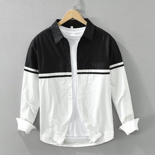 남성 캐주얼 카라넥 긴팔 셔츠 루즈핏 배색 남자 남방 봄셔츠 데일리룩 심플 남자 상의