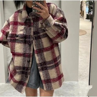 수입 명품스타일 오버핏 체크 울 하프 셔츠 코트