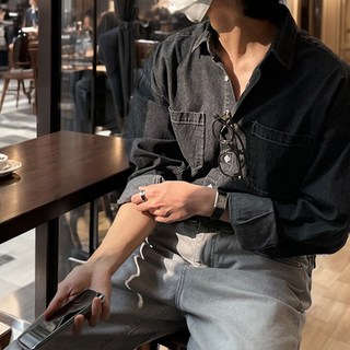 데일로엔 남성 루즈핏 워싱 데님 카라 긴팔 셔츠