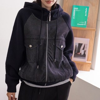 [나크21] (55~99) 데님 배색 니트 후드 점퍼 NK43-J-26