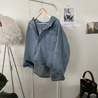 [리리모드] 후드 자수 데님 자켓 언발 가오리핏 코튼 청자켓 봄 간절기 캐주얼룩