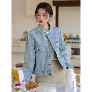 MOSAIRATION 여성 쇼트핏 빈티지 패션 데님 자켓 크롭 카라넥 디자인 청 재킷 루즈핏 V010214