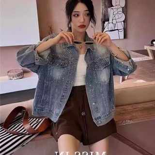 봄 가을 드라마 명품 청 큐빅 루즈 캐쥬얼 강빛나 스팽글 수입 데님 자켓