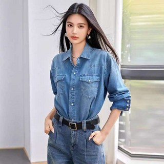 레트로 포켓 데님 청 연예인 수입 명품 셔츠 남방 캐쥬얼 드라마