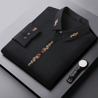 사계절 남자 긴팔 셔츠 빅사이즈 슬림핏 자수 디자인 와이셔츠 봄가을 트렌드 남성 긴팔 남방 YJW