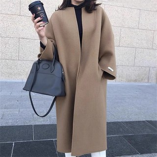 [AromBloom] 여성용 양면 울 베이직 데일리 롱코트 랩코트