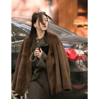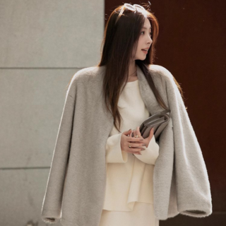 고급스러운 모직 자켓 도톰한 트위드 하프 코트