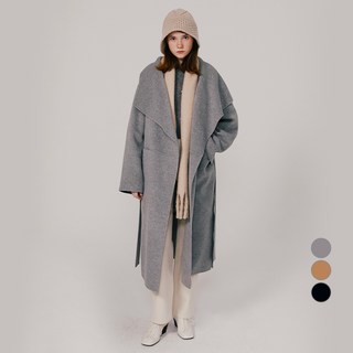 오니몰 울100 럭셔리 핸드메이드 오버핏 벨트 로브 여성 롱코트