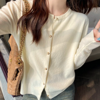 마유니 콩단추 간절기 가을 봄 슬림 오버핏 라운드넷 가디건