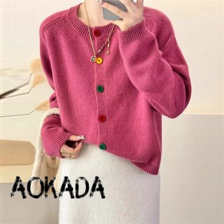 AOKADA 여성 니트 가디건 무지 베이직 라운드넥 긴팔 니트가디건 W925