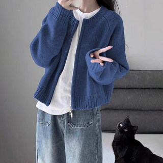 (완전 편한) 1+1 여성 라운드넥 집업 무지 기본 니트 가디건 자켓 가을 겨울 보송 솔리드 루즈핏 긴팔 심플 나른한 지퍼 니트코트 아우터 외출용 캐주얼 패션 데일리룩 쇼트 스웨터