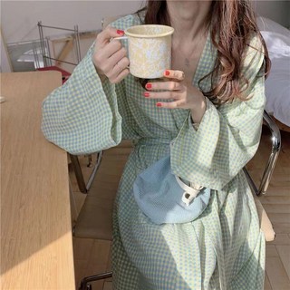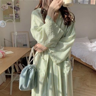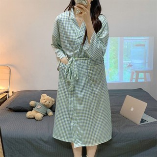 공유 후르츠 홈웨어 로브 원피스잠옷 샤워가운 XL, 체크그린, 1개