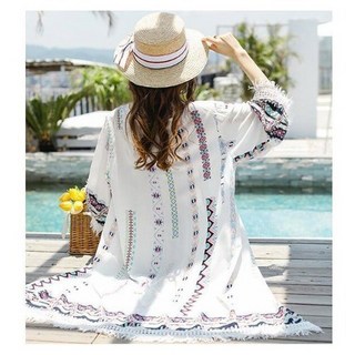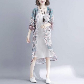 터치라인 데이 보헤미안 에스닉 로브 롱 여름 바캉스 가디건