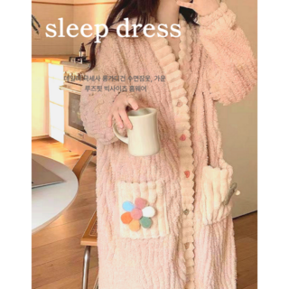 할인바이할인 소프트블로썸 극세사로브 루즈핏 수면가운 원피스잠옷