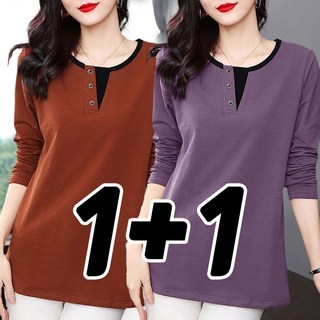 1+1 여성 봄 가을 티셔츠 캐주얼 슬림핏 긴팔티 심플 여성티 루즈핏 데일리 맨투맨 티셔츠 긴팔 상의 아우터 YMY