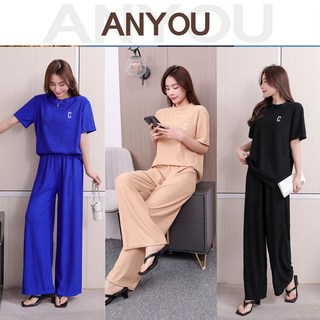 ANYOU 여름 여성트레이닝세트 캐주얼 운동복세트 여자 반팔티+ 와이드팬츠 상하세트