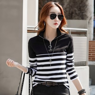 YAPOGI 간절기 여성 폴로 골프 긴팔티 슬림핏 지퍼 칼라긴팔 스트라이프 티셔츠 가을 95면티 여자 골프 상의 프리미엄원단