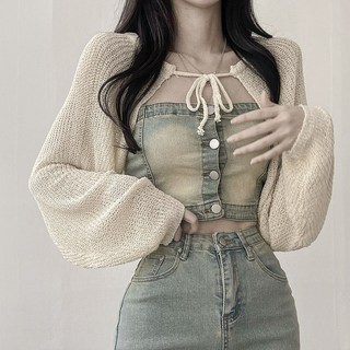 [디데이뉴] 장마 여름에 딱! 허니 벌룬 얇은 크롭 시스루 니트 루즈핏 가디건 볼레로 8color