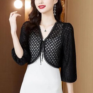 볼레로 간절기 슈러그 숏 가디건 여성용 레이스 화이트 블랙 긴 소매 웨딩 신부 여름 드레스 케이프 탑 커버 업 코트